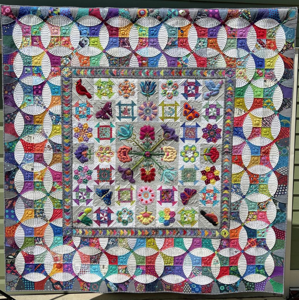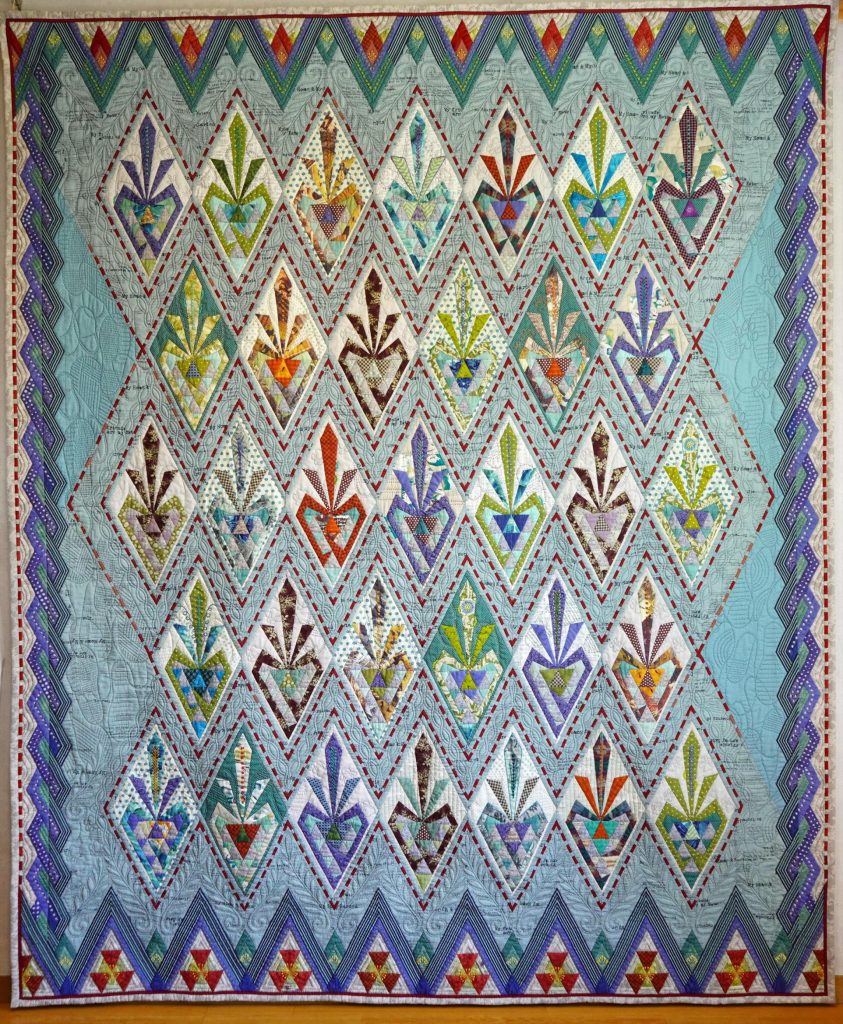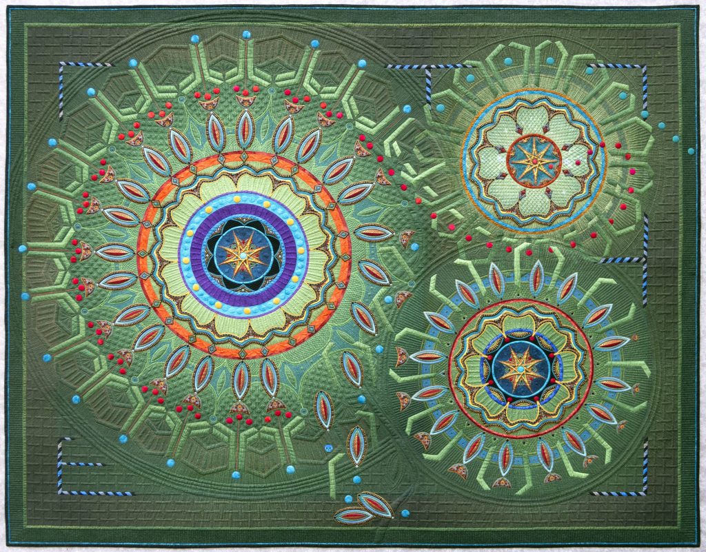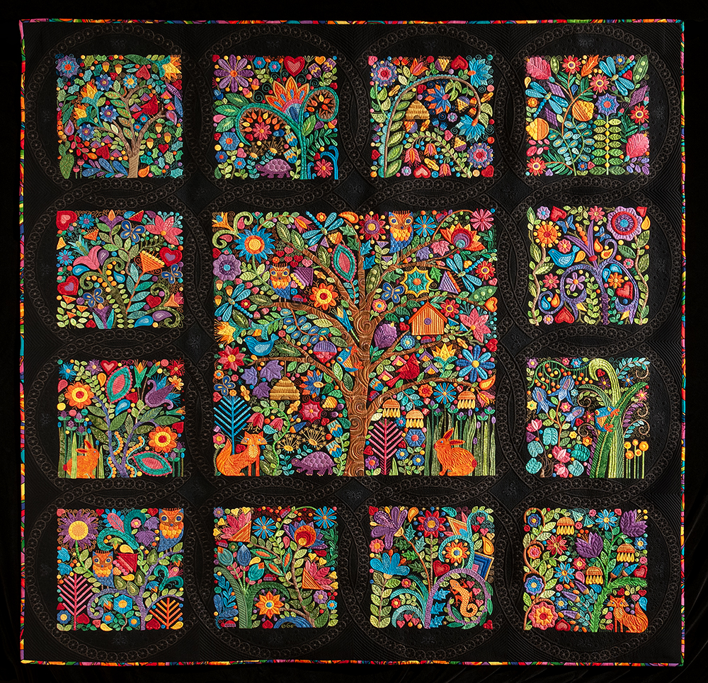 Techniques: Machine piecing, embroidery, and quilting; original digitized embroidery and quilting