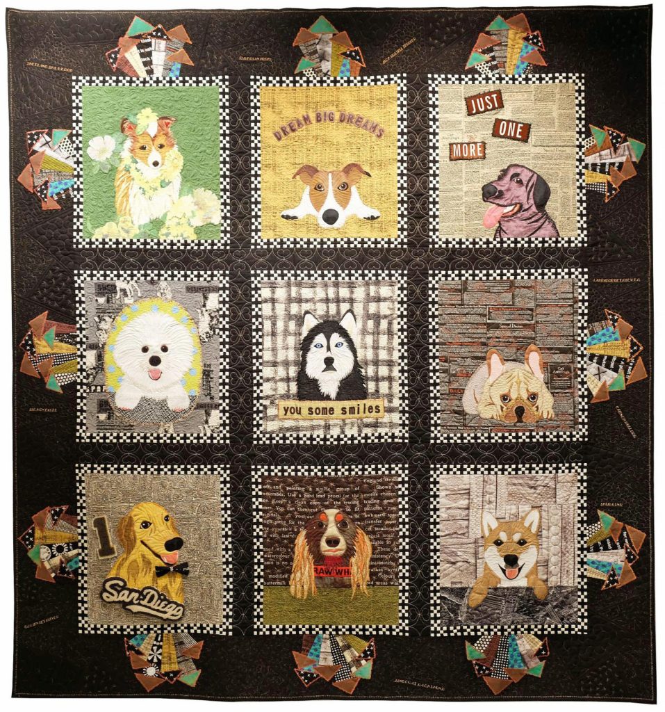 Techniques: Hand cutting, painting, and dyeing; digital printing; fusing; machine appliqué and quilting