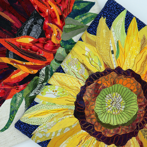 Make this fun and funky flower wall-hanging using Laura's collage techniques. Techniques covered will be using Preview Paper for placement, underlay technique, and basic collage. Finishing techniques will also be covered. Learn the basics and apply your knowledge to other projects. www.fiberworks-heine.com